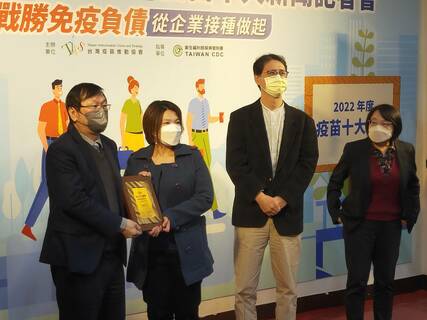 表揚推廣疫苗企業,鼓勵民眾施打疫苗!台灣疫苗推廣協會與疾管署22日共同召開記者會,表揚疫情間協助施打疫苗的企業。包括台灣麥當勞、葡萄王、世界先進、IBM國際商業機器公司、南山人壽等企業都有入選,鴻海還獲得...
