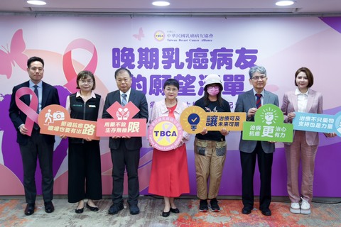 乳癌晚期病友常欠缺治療藥與輔助性服務,病友協會與跨黨立委齊呼政府加速新藥給付、增加輔導資源!乳癌病友協會7日與綠委王正旭、藍委陳菁徽與健保署副署長龐一鳴等官員共同召開記者會,協會與立委呼籲加速乳癌新藥納保...