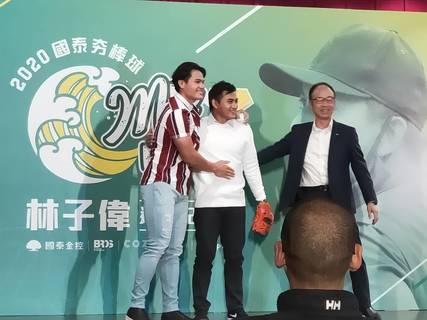球短拋給林子偉,快傳一壘手,完成了這個精采的雙殺守備!這是美國職棒紅襪隊2壘手林子偉返台後的首場記者會,現場他與好友、效力美職印地安人的游擊手張育成示範了他們行雲流水的守備默契。林子偉也分享在本賽季客串當...