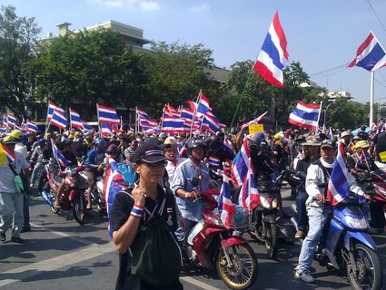 在國外避風頭的泰王近日終於返國,但在他從機場回到王宮的路上,遭到許多民眾(以學生為主)高舉三指標誌,抗議泰國王室權力過大,並要求泰國總理帕若育下台,但支持政府的群眾也身穿黃衫在旁邊抗議,雙方衝突一觸即發,...
