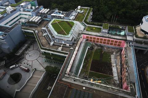 香港城市大學校園內的體育館屋頂,20日下午忽然倒塌,重達數百噸的混凝土、巨型金屬支架及天台綠化草皮整個塌下,所幸職員在電光火石間呼叫學生逃走,這起意外才只造成三人受輕傷。此事肇因是天台綠化疑屬違建工程,使...