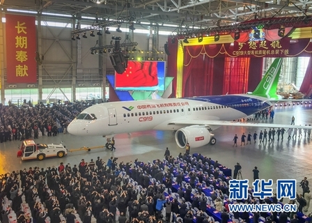 華人世界第一架自製商用客機2日在中國上海首度亮相。這架由中國商用飛機公司耗時7年多研究、開發的大型客機C919為雙引擎單體客機,CNN形容其外型與空巴A320及波音737相似,最高可容納174名乘員。負責...