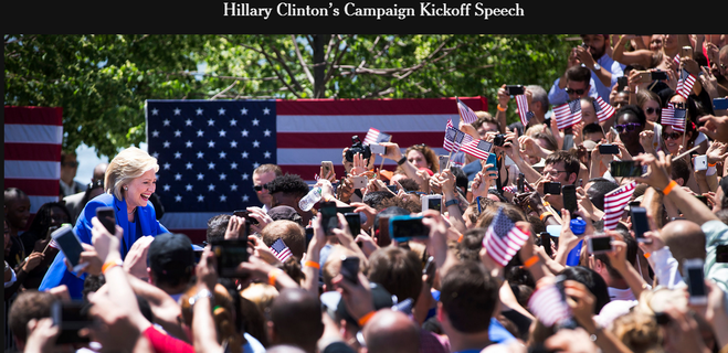 頂著烈日,美國民主黨總統參選人希拉蕊13日重返紐約羅斯福島,展開首場戶外造勢大會,現場超過5000名熱情群眾,星條旗海飛揚。面對批評者對她的年齡大作文章,希拉蕊回擊說,「我可能不是最年輕的總統參選人,但在...