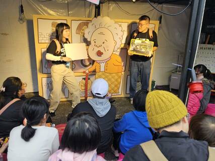 黑色衣服的演員扮演同學、揹著書包,要帶阿嬤與坐輪椅的朋友去動物園玩,但出去玩都會擔心要走路、有樓梯阿嬤該怎麼辦?社家署8日在「臺灣閱讀節嘉年華」擺攤活動,便鼓勵小朋友一起想怎麼解決?有小朋友說搭電梯、無障...