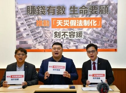 「颱風天雖有颱風假,但對雇主並沒有強制力,呼籲應讓勞工在天災時有拒絕出勤的權利!」國民黨立委游顥、黃建賓與牛煦庭15日召開記者會,呼籲將天災假法制化,讓勞工可以真放假。牛煦庭表示,他會提出「勞工退避權」概...