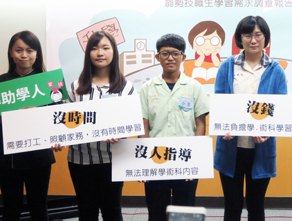 「教育是脫貧之道,但許多弱勢技職生卻為了賺錢補貼家計,無法專心完成學業。」家扶基金會執行長何素秋25日在記者會上指出,許多弱勢家庭的孩子為了賺錢,需放棄夢想改選擇能盡快就業的科系如:生命關懷科。家扶呼籲,...