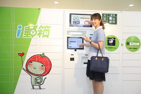 一位帥氣郵差將郵件送進「i郵箱」中,並在螢幕作設定,隨即一位小姐從手機上收到包裹取件的簡訊通知,走到i郵箱的螢幕前輸入密碼,「i郵箱」的門便自動開啟,小姐很開心地拿到郵件了。 中華郵政副總經理王淑敏...