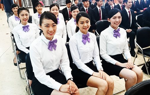 「笑容是最好的招牌。」得體的微笑加上挺拔的身姿,520正副總統就職典禮的國宴接待人員9日於國北教進行服儀講習,慶祝大會的女接待員穿著灰裙,晚宴女接待員則打上紫底白條紋領帶,與往年旗袍裝大不相同,少了貴氣,...