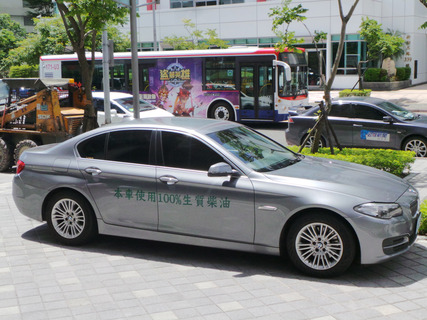 「催下去!」環保署廢棄物管理處處長吳盛忠7日召開「廢食用油變能源」記者會,現場百萬名車、推土機使用100%「純」生質柴油成功發動,且全程無黑煙排出,大幅減少髒汙空氣。 環保署廢棄物管理處技正李易書表...