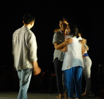 在舞蹈中玩遊戲!起初只要誰大喊「me!」所有人就必須幫助他不傾倒,直到其中一人拿起了麥克風,開始指定他人做出「跑」、「飛」、「衝撞」或「擠壓」的動作,單純的「遊戲」有了權力互動的意味。董怡芬《Play M...
