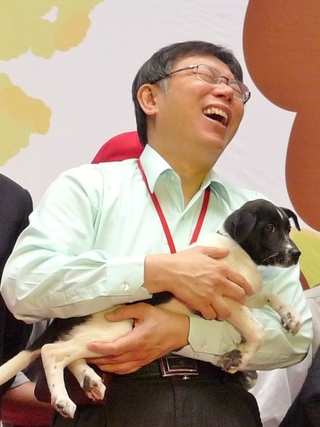 台北市長柯文哲21日出席動物保護處「動物友善城市」記者會,被狗狗逗得笑呵呵,他表示,打造動物友善城市,「我們是來真的!」將分別從上游寵物業者、中游的飼主至下游的動物安養著手,使台北成為終結棄養及虐待動物的...