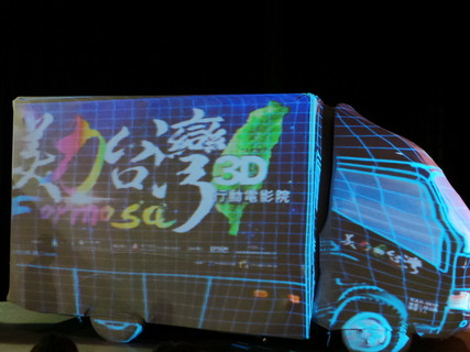 「不只要上山下海,更要3D送到家。」總統馬英九25日表示,在體驗過3D光雕車所帶來的精采光影演出後,深表感動。他鼓勵由「台灣首席3D導演」曲全立所駕駛的「3D光雕車」,能持續走完全台的偏鄉小學,將紀錄台灣...