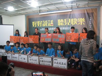 「皮諾丘!皮諾丘!不要口是心非!」小朋友在短劇表演裡,飾演不說好話皮諾丘同學,手舞足蹈的模樣可愛逗趣並用「支持」、「稱讚」、「激勵」的語氣回應皮諾丘同學。遠傳電信總經理李彬17日在「好好說話 聽見快樂」記...