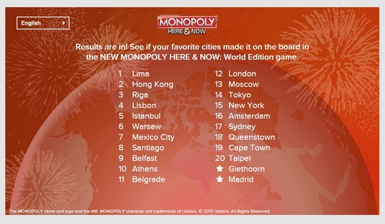「您擲出的骰子是6,走到了台北,請問您要購買嗎?」由知名桌上遊戲業「地產大亨」與美國新聞網站《BuzzFeed》合作的22個必遊城市票選中,台北市取得第20名的佳績,將有機會登上紀念版遊戲地圖。 【...