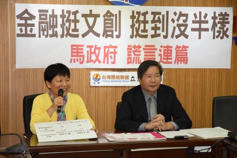 「台灣8大官股銀行對文創產業的放款成長比例,有5家連4成都不到,更有1家是0成長!」台聯黨團總召葉津鈴針對馬總統於今年元旦在致詞中呼籲「金融挺文創」,但至今未兌現,她說,政府高喊金融挺文創,卻沒讓金融業看...