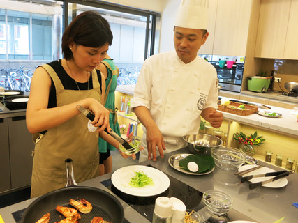 食材在鍋中滋滋作響,香味撲鼻而來,經過些許點綴、擺盤,一道泰式料理就輕鬆完成。喜來登飯店Sukhothai副主廚陳伯誠親自示範香茅拌海鮮,過程不但簡易,還色香味俱全,他說,「其實做料理並不難,只要用心體會...