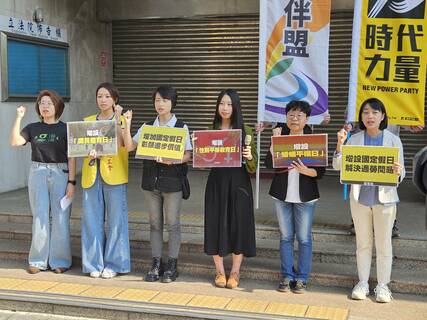 應「增加新的國定假日,例如性別平等教育、婚姻平權紀念日,才能彰顯進步價值!」時代力量、綠黨、桃產總等小黨與民團26日於立法院前召開記者會,呼籲增訂國定假日,其中還要納入多元價值紀念,如性別平等、婚姻平權、...