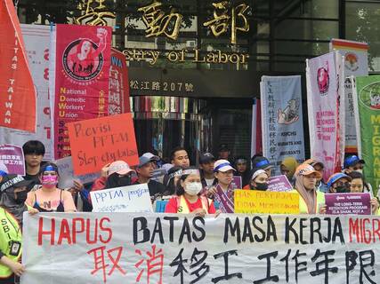 「移工延長在台工作的新措施,變成仲介剝削的新管道,盼政府取消年限、廢除仲介!」移工團體18日在勞動部門口抗議,針對勞動部透過「中階技術工作人力計畫」盼延長移工在台工作年限,但中間許多行政流程、證照都遭仲介...