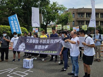 「交通政策應以行人作為作優先考量,包括設立行人優先區、制定用路人排序!」還路於民行人路權促進會22日於行政院門口抗議,呼籲交通部制定更多保護行人的政策,包括駕駛回訓制度、車輛透光率與國際接軌、恢復駕駛記點...