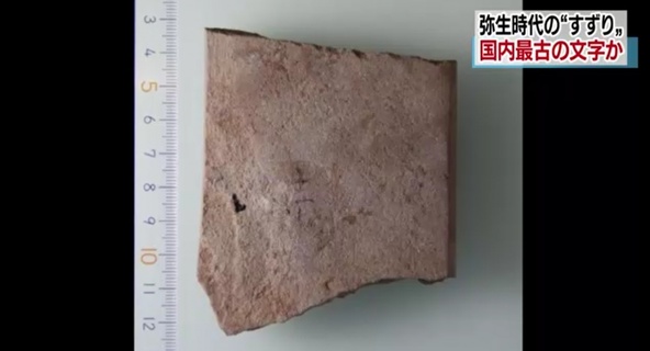 刻有文字的2000年歷史古藝品碎片出土,已引起日本學界轟動!日本研究人員日前於島根縣田和山上發現一刻有文字的古老藝品碎片,各界專家興奮表示其為本土發現最古老的書寫文字證據。福岡市研究員竹尾久住說:「碎片表...