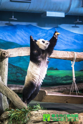 熊貓「圓仔」搖搖晃晃地站立在木樁上,眼睛緊盯食物,一刻也不鬆懈,一個箭步上跳,俐落取得早餐。熊貓訓練員、動物園保育員陳毅彪25日受訪時說:「為了訓練大熊貓們的肌肉,動物園會特別把食物吊在空中,讓他們練功夫...