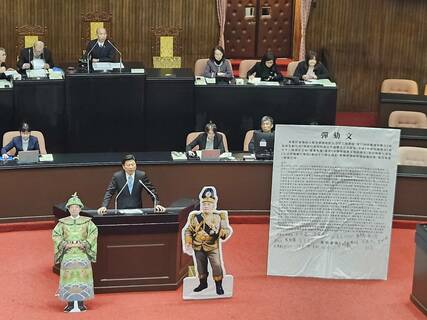 總統賴清德沒出席彈劾委員會,他的人形立牌倒是來了!立法院21日召開彈劾賴清德的全院委員會,但賴總統拒絕出席,藍白立委因此在發言台旁放置彈劾主文,還有印有賴總統臉的皇帝與袁世凱人形立牌,藉此表達不滿與諷刺。...