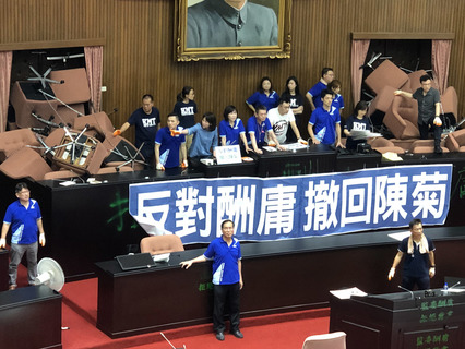 拒絕臨時會通過監察院人事案,國民黨佔領立法院議場表達抗議!國民黨團28日下午4時闖進立法院佔領議場抗議指出,民進黨將脅持絕對多數通過任命,讓陳菊等充滿爭議的人選就任,根本沒有要真心廢考、監。不過民進黨則譴...