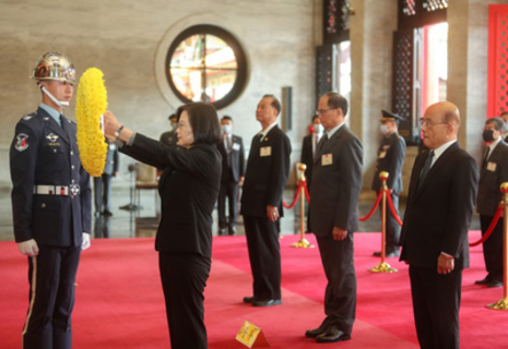 春祭革命先烈,因應疫情總統蔡英文以拱手代替握手!總統蔡英文29日上午率行政院長蘇貞昌、立法院長游錫堃出席「中華民國109年台北忠烈祠致祭活動」。因疫情風險控管考量,過去慣例由總統與副總統共同出席,參與規模...