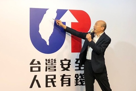 「台灣UP」藍白紅3色搭配,韓國瑜競選LOGO亮相!國民黨總統參選人韓國瑜14日公布競選LOGO,由國旗3色構成「UP」圖樣。韓國瑜表示,融入2300萬台灣人的希望,「台灣安全、人民有錢」,「UP」的「U...