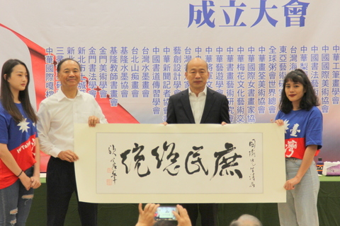 美術界挺韓後援會成立!國民黨總統參選人韓國瑜17日出席美術界挺韓國瑜後援總會,嶺南畫派名家歐豪年致贈「橫掃千軍」、「庶民總統」2幅墨寶,國寶級鬼故事創作文學大師司馬中原也現身支持。韓國瑜和6位大師在台上揮...