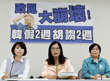 立法院國民黨團近期連番召開記者會,指責「蔡政府以政治操作陳同佳事件」,民進黨團28日上午召開「韓假2週、胡謅2週」記者會,痛斥國民黨總統參選人韓國瑜的政見大崩壞,只是在墊高民進黨現行政策。對此,國民黨團下...