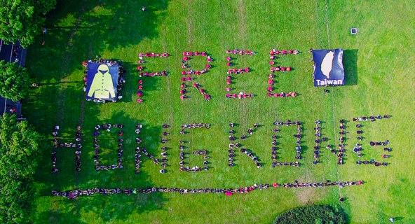 挺人權!撐香港!台灣NGOs於11日的烈日下號召300人以人體排字「Free Hong Kong」聲援香港反送中運動,他們也在台北華山中央藝文公園高喊:自由無罪,民主無罪。台灣人權促進會秘書長邱伊翎表示,...