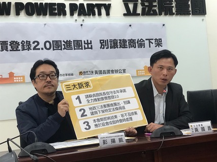 「政府承諾推動實價登錄2.0,竟縮水成0.5!」立委黃國昌22日表示,去年由政院提出的實價登錄2.0,至今已躺在立院一年,23日雖然排審立委張宏陸的版本,卻不排政院版。巢運發言人呂秉怡指出,張宏陸版本的法...