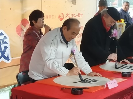 「寄語白雲,祝福你永遠幸福……」24日,在歌手簡文秀清脆的歌聲中,民眾原被大雨弄得憂鬱的心情瞬間一掃而空,接著前立法院長王金平等人紛紛拿起手中的毛筆,寫下幾個大字。王金平在致詞時笑到,從小毛筆就沒學好,是...