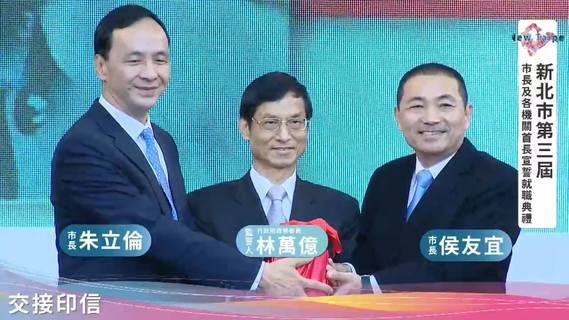 在陰雨綿綿的天氣中,新北市長宣誓就職典禮25日上午在新北市民廣場舉行,在行政院政務委員林萬億擔任監交人下,新任市長侯友宜接過印信,他在演說中宣告:「簡政便民,接地氣、顧民生,全球接軌、緊密結合。」是未來主...
