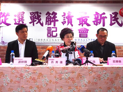 台灣政治已超越民粹,奠定民主?前副總統呂秀蓮27日於「從選戰解讀最新民意」記者會上分析表示,從今以後公投將會主導台灣政局,藍綠兩黨均需反思,在「人民要當家作主」的局面下,包括吳統雄、游梓翔、康仁俊與莊勝榮...
