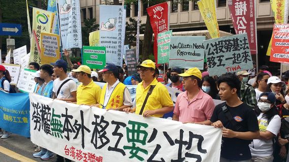 「勞工不分國籍,移工要公投!」數百名移工29日在中選會門外抗議勞基法修法,並呼籲政府將《公民投票法》納入非公民的移工,讓首當其衝的移工對勞基法修法表達意見。越南外勞配偶辦公室專員賴毓棻指出,台灣移工是撐起...