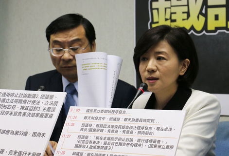 針對前瞻基礎建設特別條例在異議聲中混亂通過,國民黨團書記長王育敏27日在記者會上直指這是無效的法案與會議!她說,「民進黨立委邱議瑩擔任主席卻無視議事規則,在有人抗議時沒有停下投票,直接喊通過,顯示這是無效...