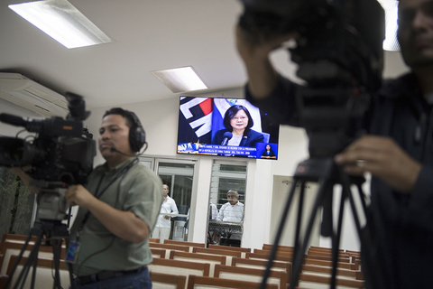 針對總統蔡英文出訪尼加拉瓜引發爭議,隨團台媒嘆無法拍攝雙方會談,總統府發言人黃重諺10日解釋,「外交慣例是閉門會談結束後才對外說明,奧蒂嘉可能較熱情,所以開放尼國媒體直播。」綠委王定宇也緩頰說,「難說奧蒂...