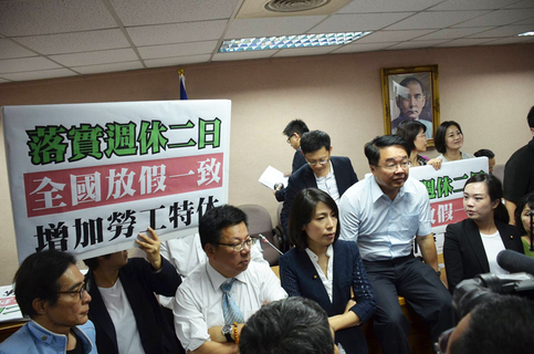 針對「一例一休」草案引發朝野互不相讓地杯葛,8日終於達成共識!立法院長蘇嘉全經過3個多小時的朝野協商後宣布,「各黨團同意19日共同勘驗10月5日爭議的議事錄,且公聽會在15日舉行。」國民黨團總召廖國棟、時...