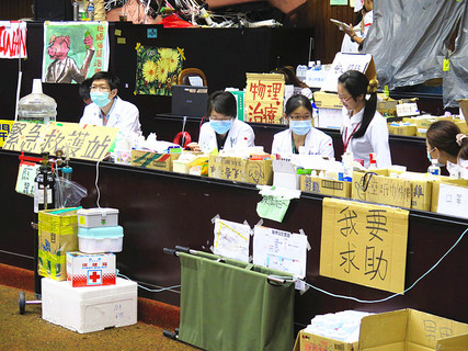 「立法院的醫療站與在重大災害發生時、以急救為目的組成的醫療團不同,不需要向台北市衛生局報備。」衛福部醫事司長李偉強7日回應外界質疑立院醫療站合法性時表示,醫療站屬民眾自發行為,故無需報備。立委蘇清泉則大聲...