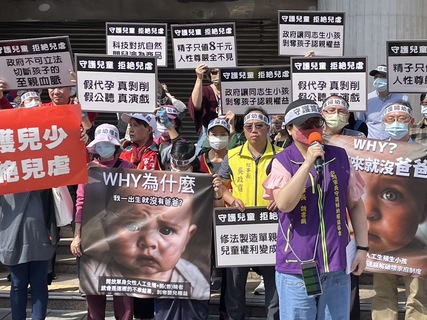 「我花了十個月代孕,好不容易把孩子生出來了,請讓我們多相處一下。」飾演代理孕母的演員如此哭喊,但旁人還是無情奪走孩子!台灣家長守護婦幼權益協會28日於立法院前演出行動劇,現場更有近50人高舉寫有「假代孕真...