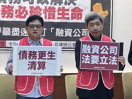 車貸、手機貸等非銀行融資目前仍是無法可管,債務規模上看千億,甚至逼著民眾走上絕路!輔仁大學社會系副教授吳宗昇25日說,這些類型的借貸不僅利率高,且催債手段凶狠。台北律師公會債務清理委員會主委林永頌呼籲,政...