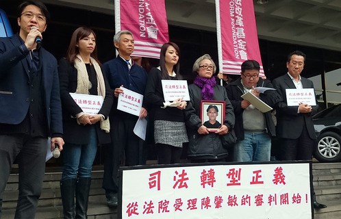轉型正義從江國慶案開始!針對近日高檢署駁回陳肇敏等人的不起訴案,18日江國慶母親在洪慈庸、律師顧立雄等人陪同下,到台北地院聲請將江國慶案交付審判。洪慈庸表示,「過去我是受害者家屬,今日我可以參與改革」,未...