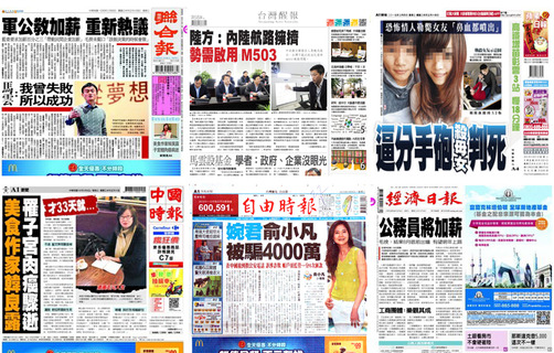 國民黨立委9日在立院力挺82萬名公務員加薪,並推出「勞工加薪四法」修正案,成為10日 《蘋果日報》、《自由時報》的頭版頭條。《蘋果日報》的報導焦點擺在強制企業提年度分紅計劃的「勞工加薪四法」;《自由時報》...