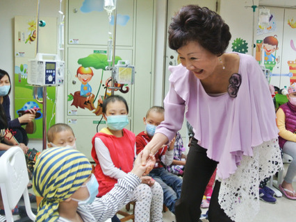 台中市長夫人邵曉鈴走進兒童病房,與癌童一起聽故事。台中市政府教育局在中國醫大附設醫院兒童醫療大樓設置「醫院床邊教學班」,31日由三位學校校長及老師一同演出著名繪本「小種籽」,病童都仔細聆聽並開心地哈哈大笑...