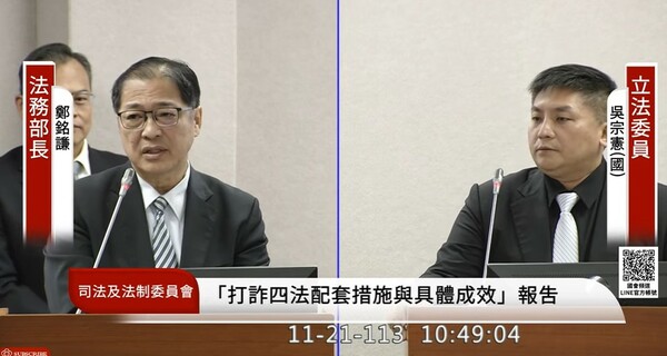 「死刑釋憲恐讓現有30位死刑犯變成一般被告,可隨時回家?」國民黨立委吳宗憲21日質詢法務部長鄭銘謙時如此詢問。鄭銘謙則回應說,不會有空窗,也不會放回到社會。司法院刑事廳廳長李釱任則在答詢時表示,會將其身分...