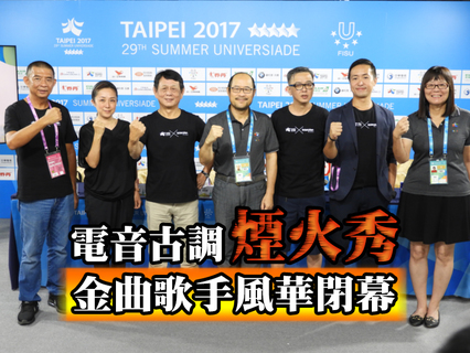 在「九天民俗技藝團」整齊化一的敲鑼打鼓畫面下,各國代表團運動員進場,為世大運30日閉幕揭開序曲!此次以「台北愛你」為主軸,歌頌著「英雄」、「夢想」、「勇敢」三大主題,向場內所有參賽選手致敬。金曲歌手家家等...
