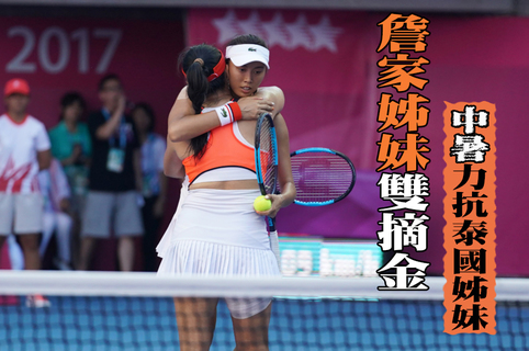 「詹家姊妹」詹詠然、詹皓晴28日對上泰國的「萬丹彩姊妹」,雙方進行金牌爭奪戰。詹詠然於首盤及休息時,呈現身體不適狀況,但依然力拚到底,詹家姊妹雖在第8局時曾被追平,但用一記扣殺穩住局面,最後摘下我國世大運...