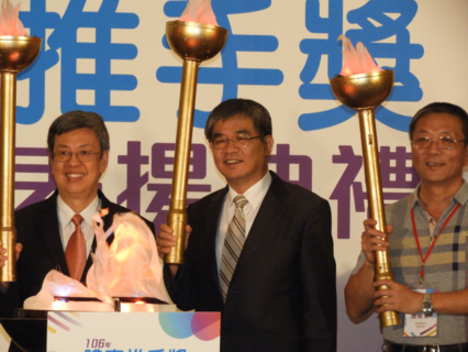 「體育推手獎表揚典禮」6日在數名頭戴魔術帽、身穿深藍色亮麗服裝者的舞蹈下揭開序幕。體育署指出,今年共有42個單位獲獎,為往年之最,顯現國內體壇贊助風氣大幅提升。副總統陳建仁致詞時表示,體育人才的養成並非一...